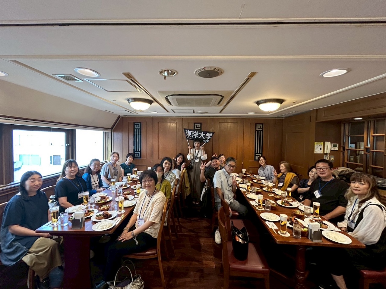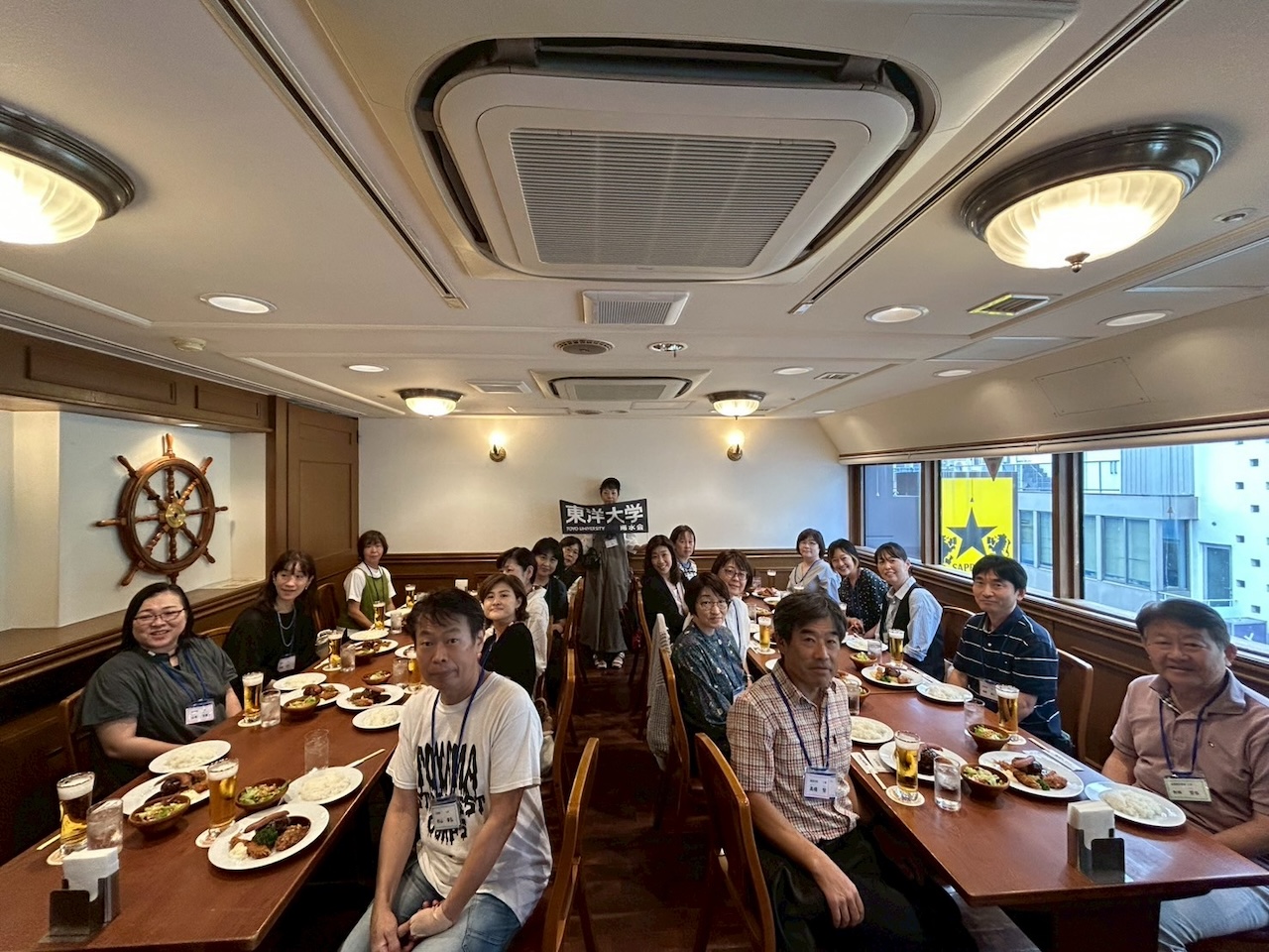 懇談会は、支部長持田さんのご挨拶を皮切りに各テーブルで美味しいランチとビールで楽しい会話が弾みました。1年生から4年生まで、各学部に通う学生の近況や学年よっては就活の情報交換など話が盛りだくさんであっという間にランチ終了です。