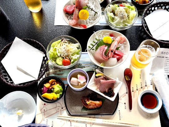 お料理は女性向けの特別コースとのことで少なめの量かと思いきやお刺身、茶碗蒸し等を皮切りに揚げたての天ぷらが一つずつ次から次へと提供され、締めのうどん、デザートのフルーツ、飲み放題ドリンクとお腹いっぱいになる内容で皆様に喜んでいただくことができました。
