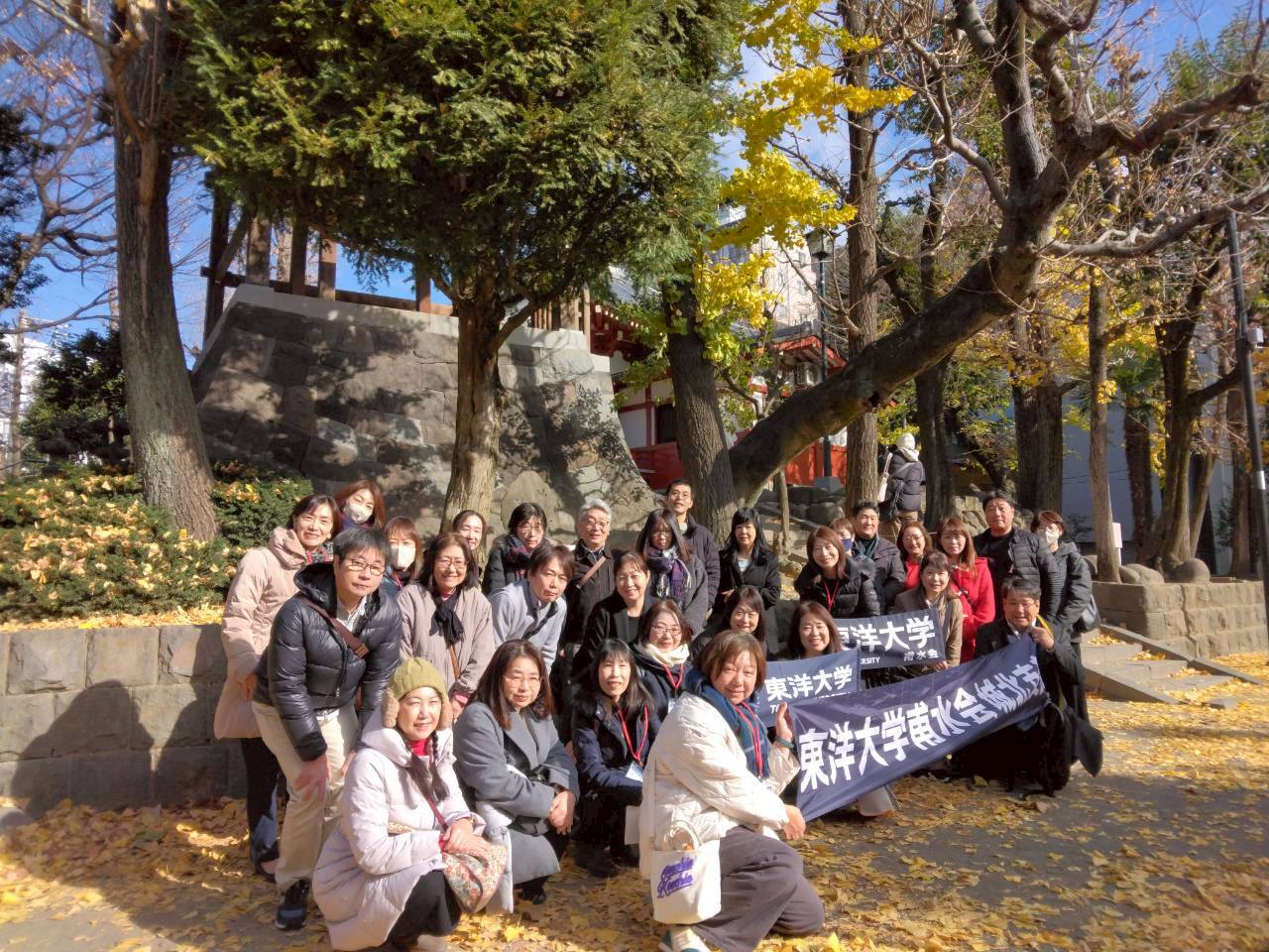 前日までの陽気が嘘のような冬日、浅草弁天公園の紅葉が一段と鮮やかの中記念撮影をし、食事をしながら親睦を深めました。 「同じキャンパスの保護者の方たちとお話しすることも出来て、貴重な時間を過ごすことができました」「子供の進路や各々の情報交換で実のある時間を過ごせた」「観光客のように浅草を楽しめました」などの感想をいただきました。