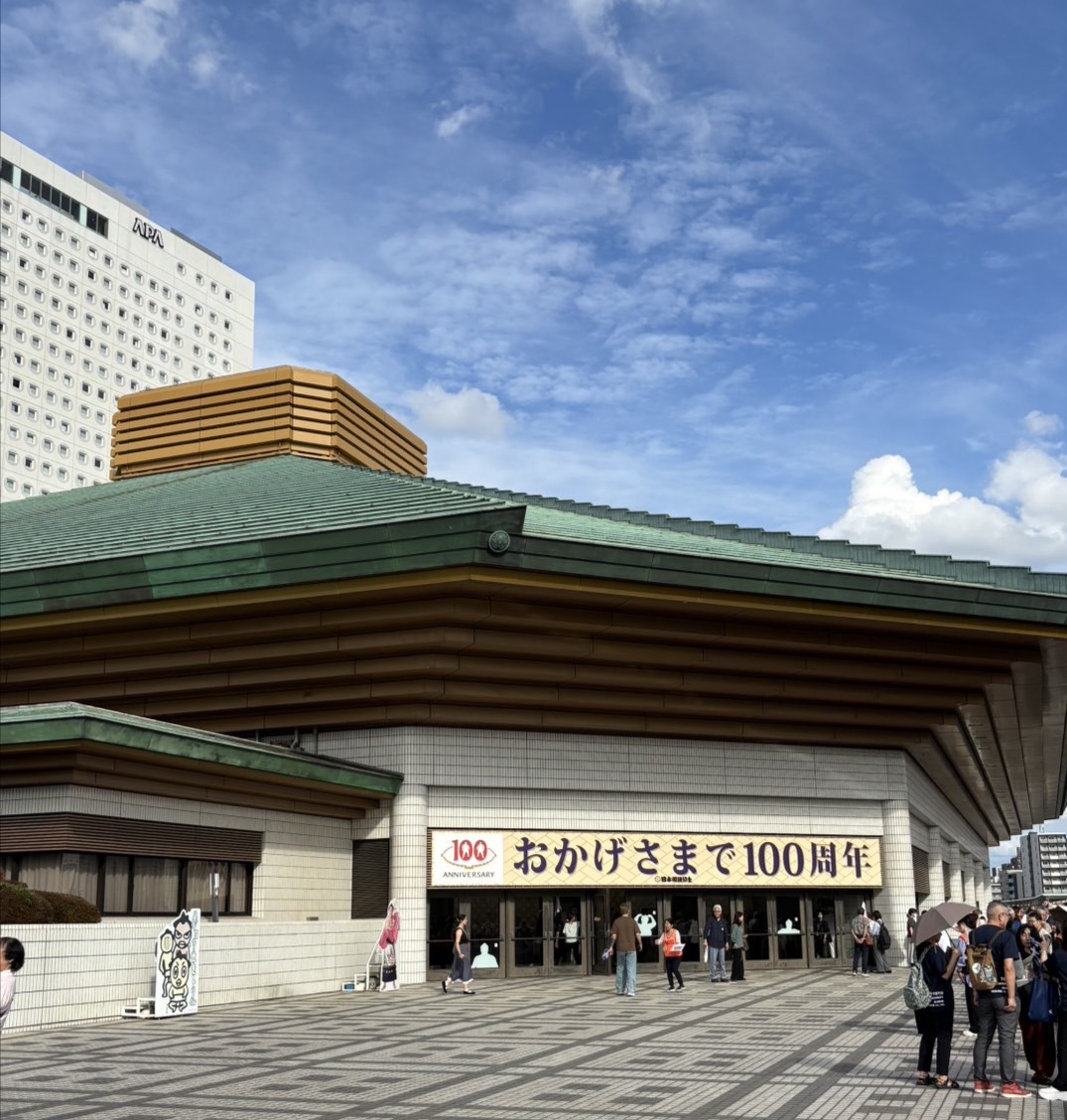 令和7年9月23日(火・祝)、快晴に恵まれた秋分の日、国技館で開催中の大相撲九月場所観戦と、ちゃんこ鍋を囲んだ交流企画に、30名の会員が参加されました。両国駅に集合しましたが、周辺はすでに多くの人で賑わっており、会場前にはのぼり旗がたくさん掲げられていました。