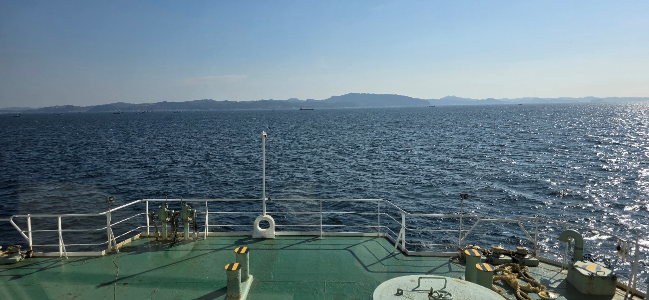 7時半という少し早い集合時間でしたが、今回残念ながら不参加の鈴木支部長よりメッセージと差し入れのお煎餅(これがまた泡のドリンクを求めずにはいられない黒こしょうが効いていて最高でした 笑)をつまみながら、久里浜港へ出発。久里浜港ではフェリーをバックに記念撮影をし、いざ乗船!!金谷港へ向かう海は波も穏やかで、カモメが先導してくれ、デッキで潮風を感じながら、誰もが非日常を満喫したことでしょう。